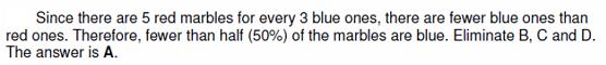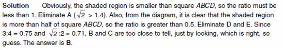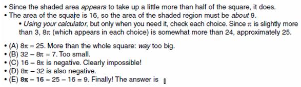 91. Clearly, a commission of 25˘ on $20 is quite small. Eliminate D , and guess one of the small percents. If you realize that 1% of $20 is 20˘, then you know the answer is a little more than 1%, and you should guess A (maybe B, but definitely not C). The answer is A.