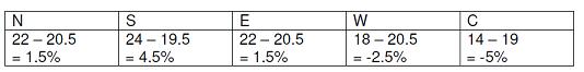 Central = 6 + 6 + 2.5 + 4.5 = 19%