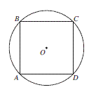 45. In the figure below, square ABCD is inscribed in circle O. If the area of the square is 50, what is the circumference of the circle?