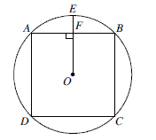 48. In the figure below, square ABCD is inscribed in a circle whose center is O and whose radius is 4. If EO ? AB at F, what is the length of EF?