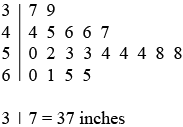 The stem-and-leaf plot above gives the height, in inches, of evergreens in a nursery. What percent of the evergreens are over inches tall?