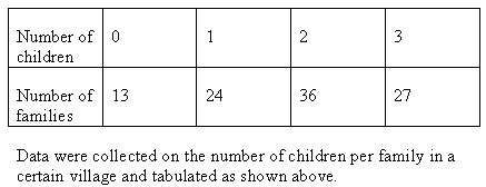 The average (mean) number of children per family in the village is approximately