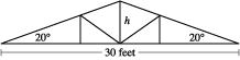 264. Which of the following expressions is the closest approximation to the height h, in feet, of the roof truss shown below?