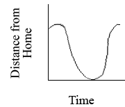 288. Ralph was on his way from home to work when he remembered that he left his briefcase at home. He drove home and then drove back to work. Which of the following graphs could represent his distance from home as a function of time?