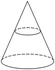 The right circular cone above is sliced horizontally forming two pieces, each of which has the same height. What is the ratio of the volume of the smaller piece to the volume of the larger piece?