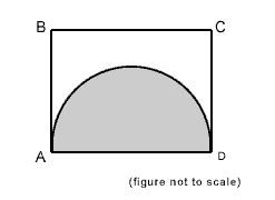 Rectangle ABCD has a perimeter of 26. The half circle with diameter AD has an area of 8p. What is the perimeter of the part of the figure that is not shaded?