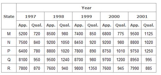 311. Combining the states P and Q together in 1998, what is the percentage of the candidates qualified to that of the candidate appeared?