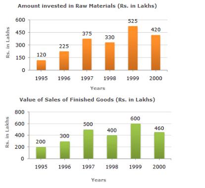 364. In which year, the percentage change (compared to the previous year) in the investment on Raw materials is same as that in the value of sales of finished goods?