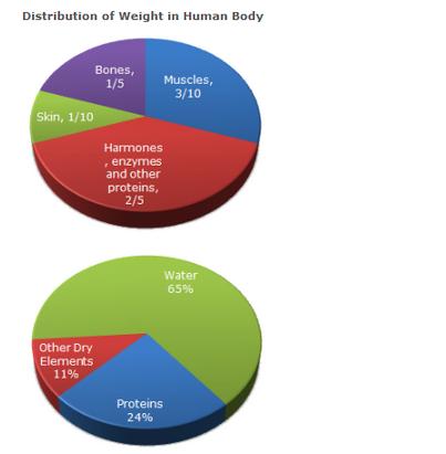 369. How much of the human body is neither made of bones or skin ?