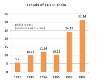 488. If India FDI from OPEC countries was proportionately the same in 1992 and 1997 as the total FDI from all over the world and if the FDI in 1992 from the OPEC countries was Euro 2 million. What was the amount of FDI from the OPEC countries in 1997 ?