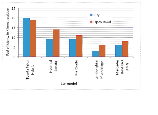 73. If the Toyota Prius travelled 60 kilometres in the city, how many kilometers in the city would the Mercedes Benz travel on the same amount of petrol?