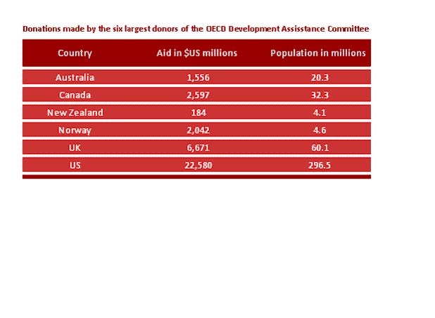 77. Which of these six countries donated the most per capita?
