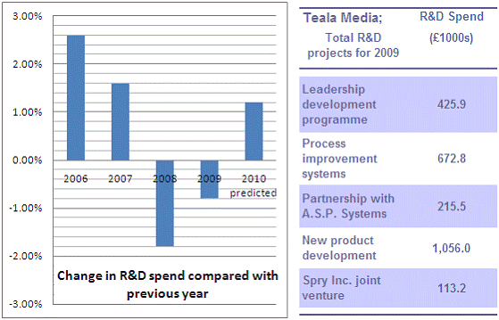 92. If delays at the end of 2009 resulted in a 2.5% increase in the cost of each of the two most expensive projects, what is the total R&D spend for 2009 (to the nearest £1,000)?