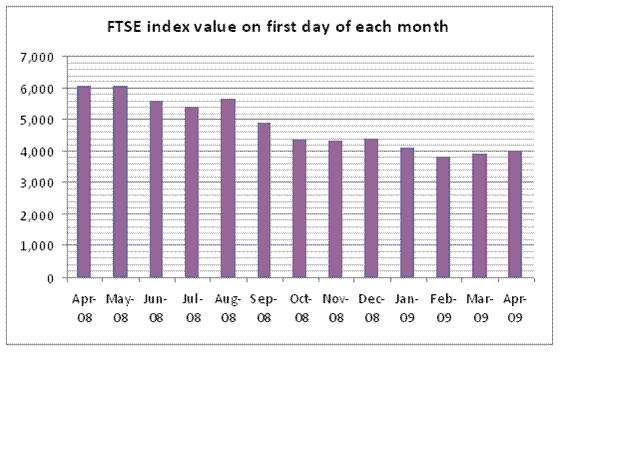 168. To the nearest 5%, what percentage of its April 08 value was its April 09 value?