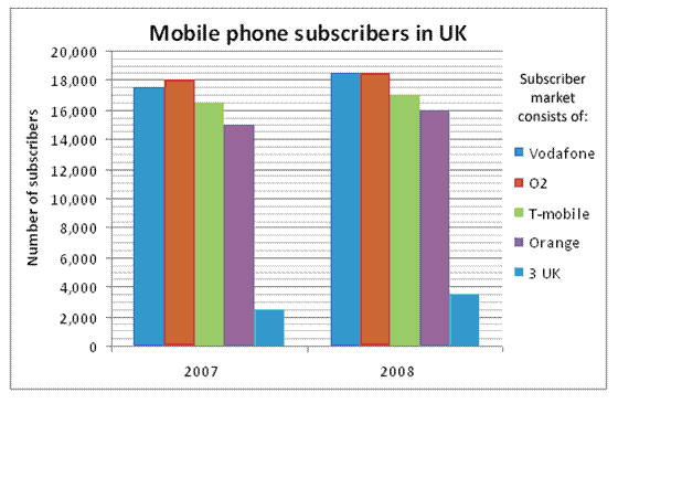 189. If 3 UK continued to increase its share of the subscriber market by the same percentage growth as it did between 2007 and 2008, approximately how many more years (after 2008) would it take until it has more than a 20% share of the subscriber market?