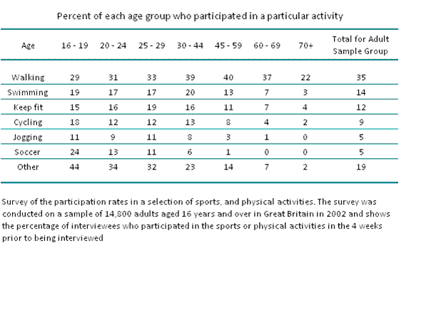 193. The number interviewed in the 70+ age range was 360. None of the interviewees in this age range participated in more than one activity during the four week period. How many of them did not participate in any activity at all?