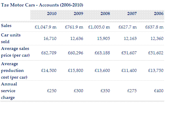 203. If each car produced was offered with a free first year’s service, in which year would this have cost the car manufacturer the least amount?